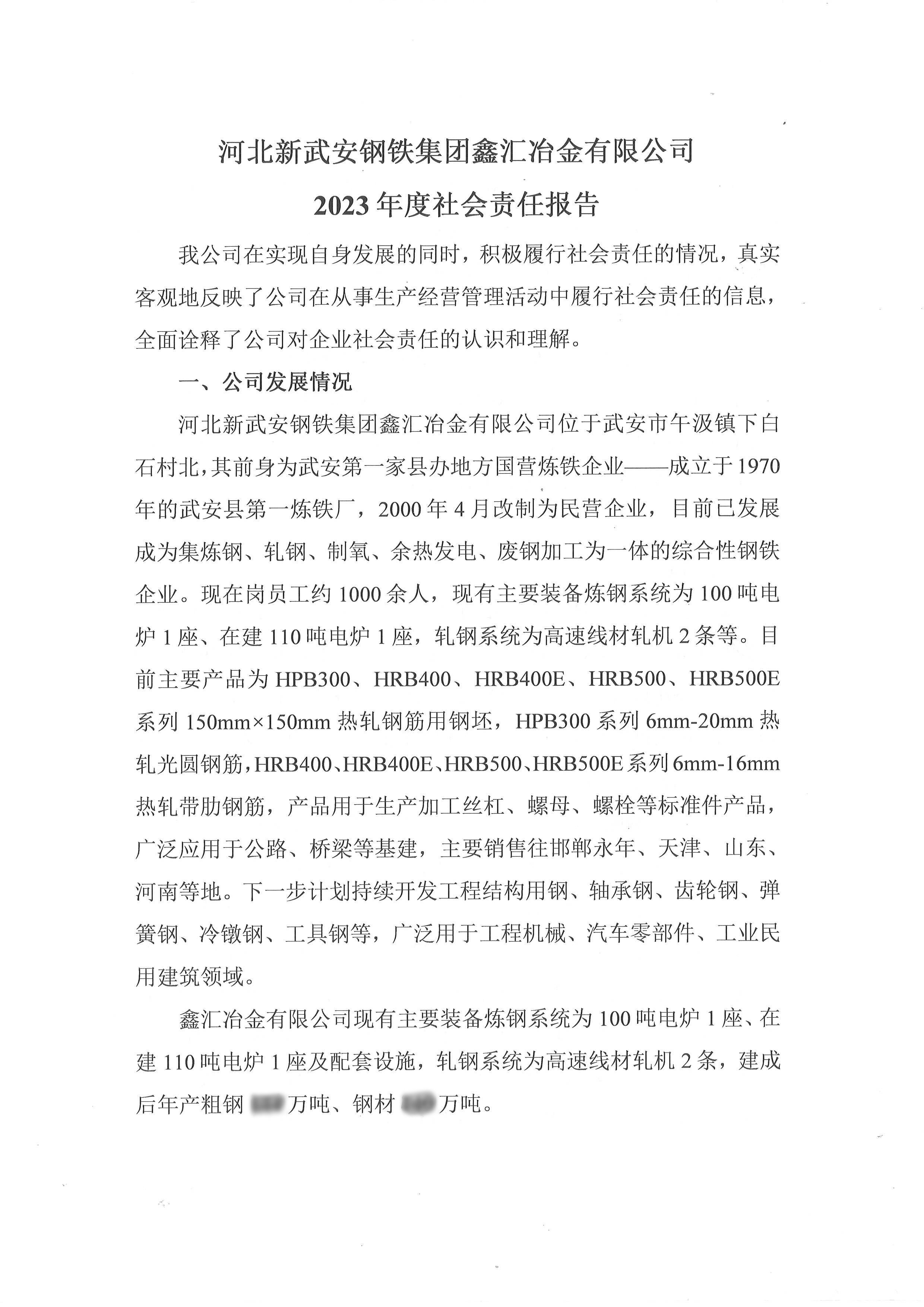 河北新武安鋼鐵集團(tuán)鑫匯冶金有限公司2023年度社會責(zé)任報(bào)告